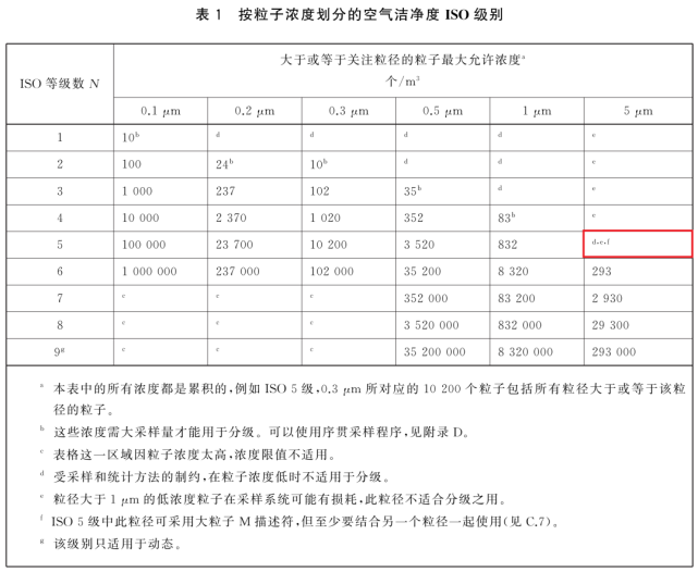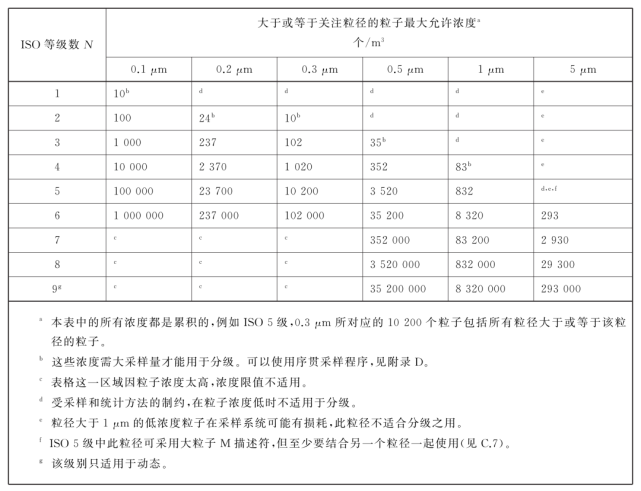 注1:規(guī)定了按空氣懸浮粒子濃度劃分的級(jí)別。