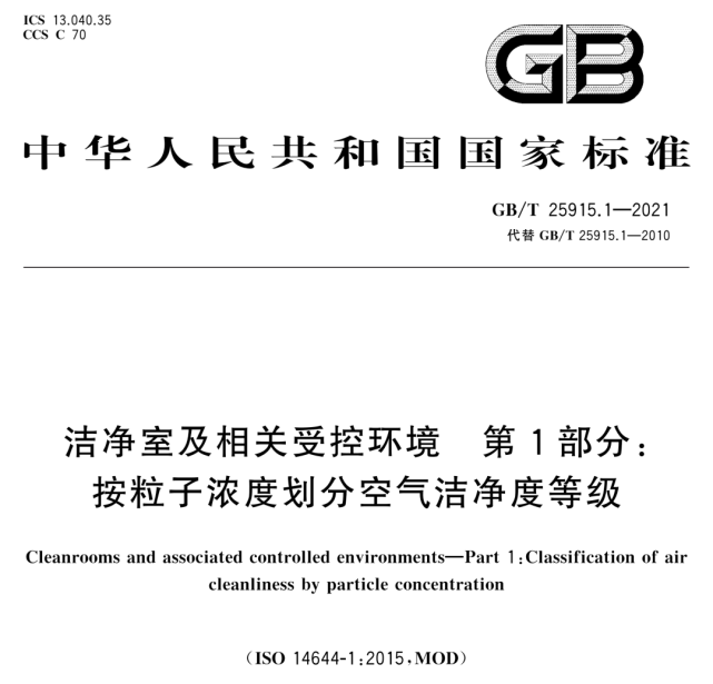 GB/T 25915《潔凈室及相關(guān)受控環(huán)境-1:空氣潔凈度等級(jí)》發(fā)布,3月1日起實(shí)施