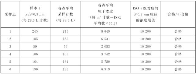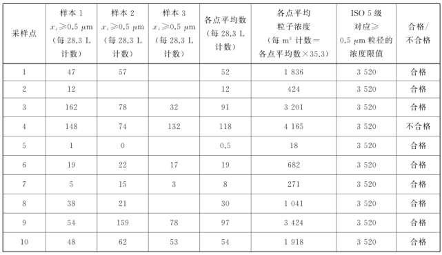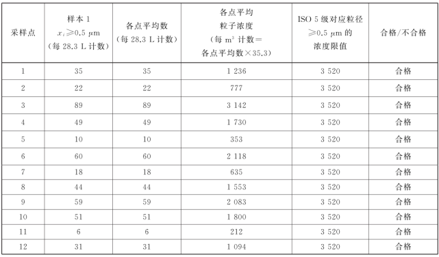 表中所有濃度都是累積濃度,例如ISO5.5 級(jí),0.5μm 粒徑的11100 顆中,包括所有粒徑大于或等于該粒徑的粒子。