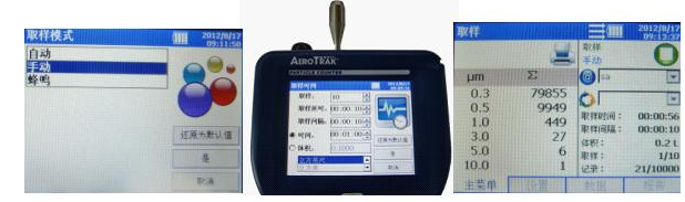 四、摘除清零過濾器,安裝等速采樣器,檢測進(jìn)行:包括自動模式、手動模式和蜂鳴模式。